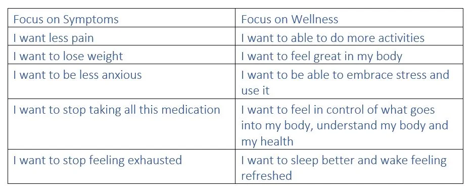6. How we approach our symptoms and state can have a huge impact on the outcomes we achieve. Focusing on symptoms versus Focusing on Wellness is one example.